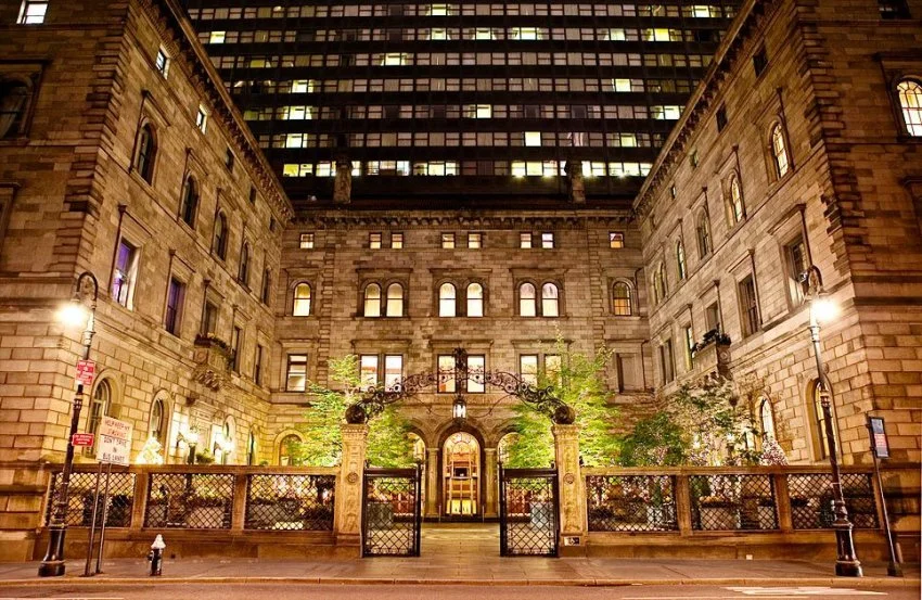 Old World elegance, newly renovated. Steps from Fifth Avenue and Rockefeller Center. 2.8 miles (11 minute cab ride) from 632 on Hudson. Spa and fitness center (7,000 sq ft), cafe, two bars and lobby lounge. Highly discounted rooms are $329 for a standard king (360 sq ft), $349 for a king with Cathedral view.